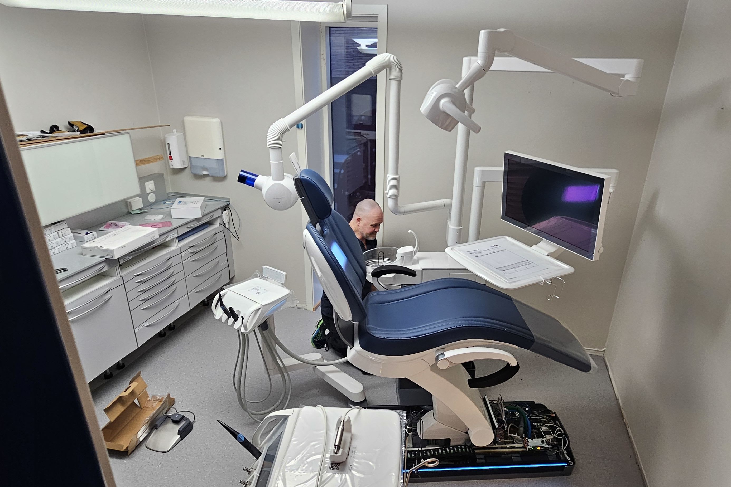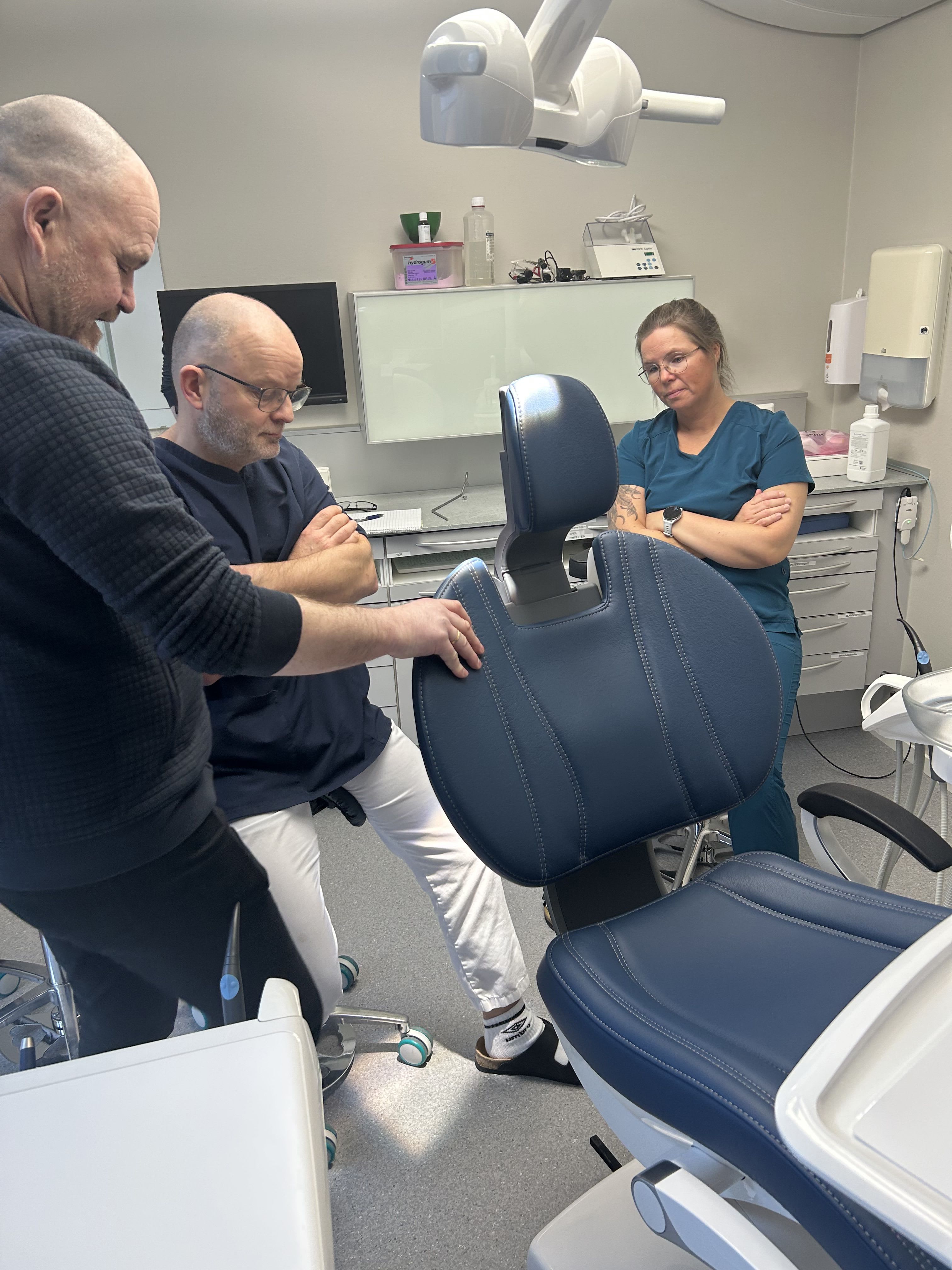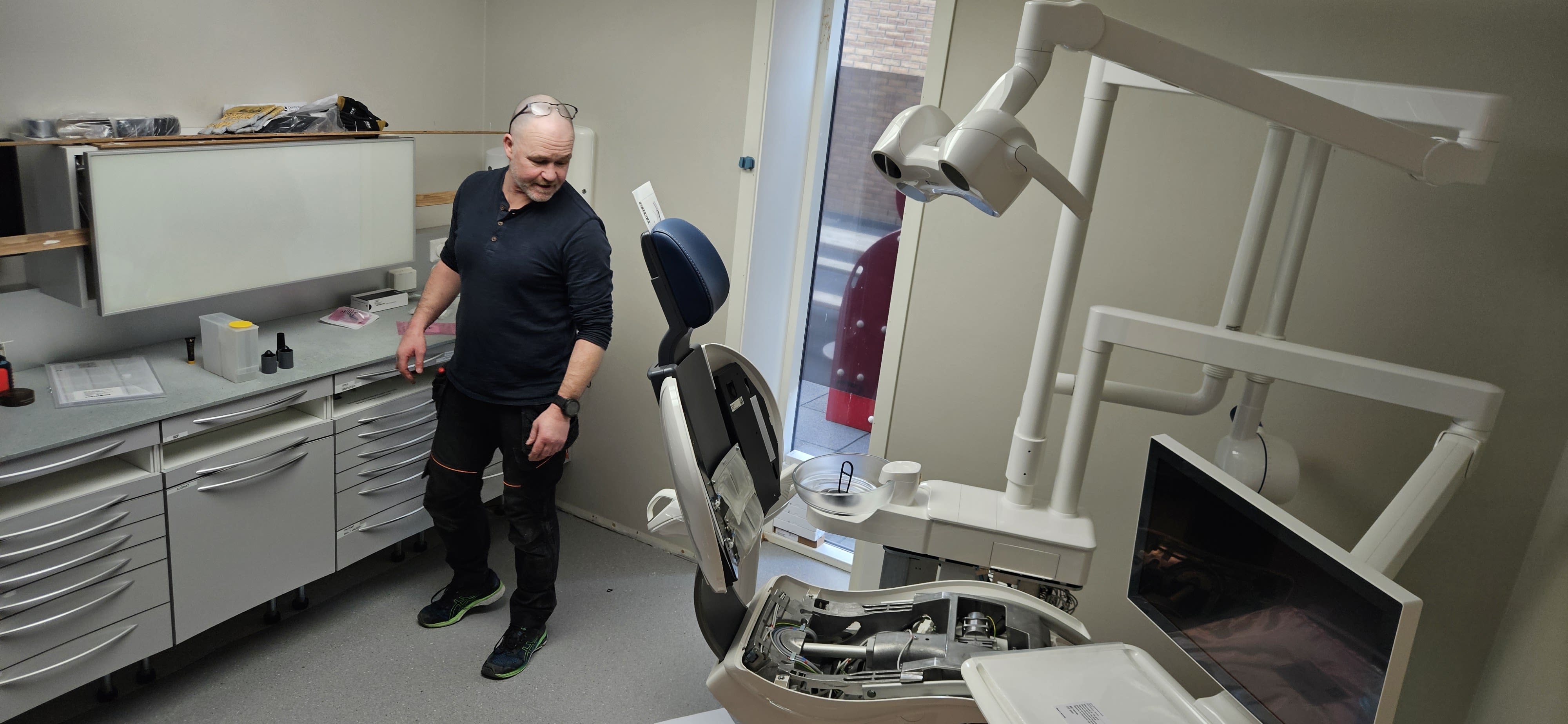 Vår dyktige servicetekniker Torben Grønner var faktisk med og monterte opp de første behandlingsstolene for 25 år siden. Han var selvfølgelig til stede under monteringen av nytt utstyr og sørget for at alt gikk på skinner.