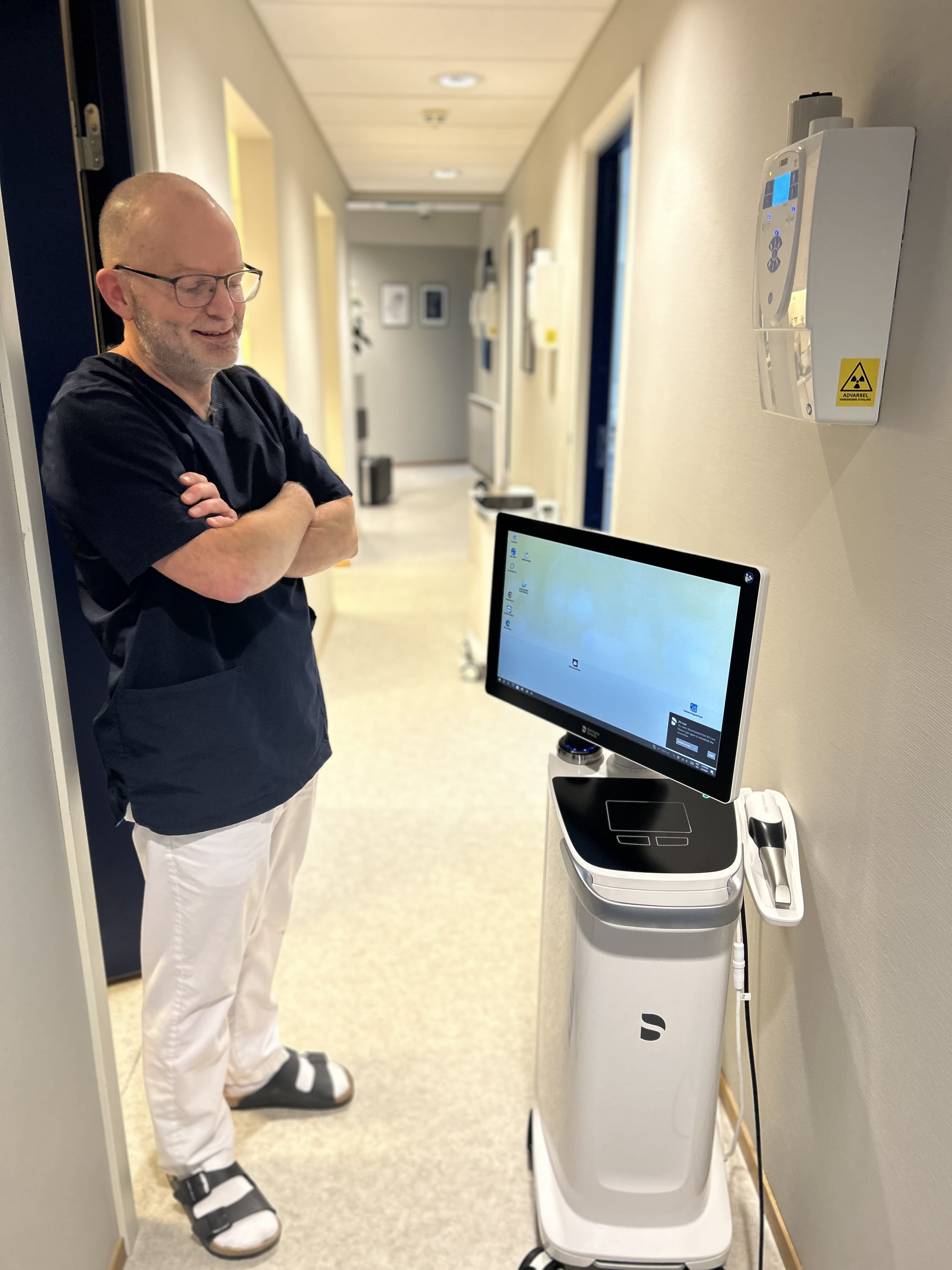 Tannlege Anders Sægrov forteller meg at det har vært en lang og spennende reise for tannklinikken og at de har fulgt den teknologike utviklingen hele veien. «I 2001 fikk vi digitalt røntgen, og dette var virkelig en opptur. Dette var like etter innføring av digitalt journalsystem og jeg hadde nettopp kjøpt vår første PC. Deretter kom vår første Dentsply Sirona unit (Siemens, som det het den gang) på plass i 2002. I dag har vi seks moderne behandlingsrom og et rom for OPG og CBCT-opptak, sier tannlege Sægrov.