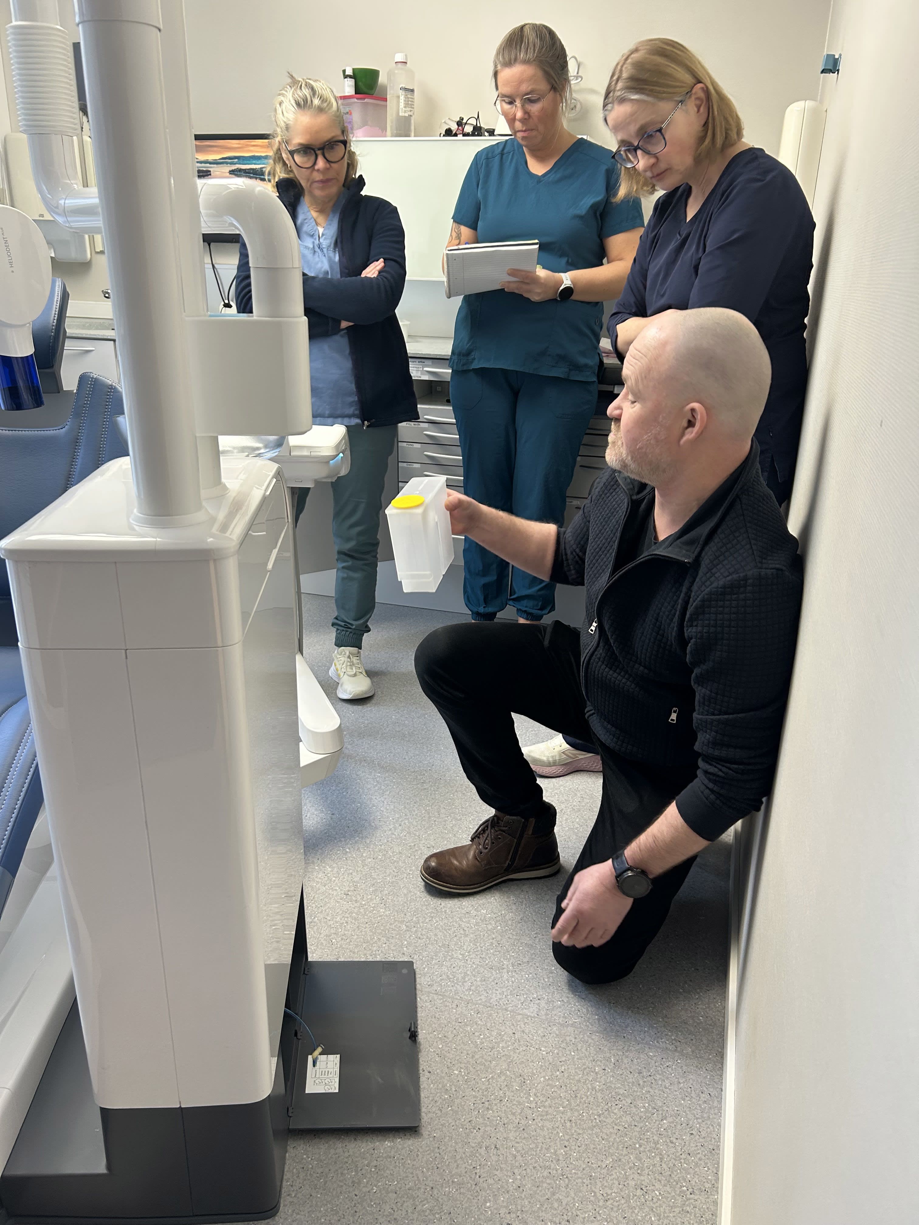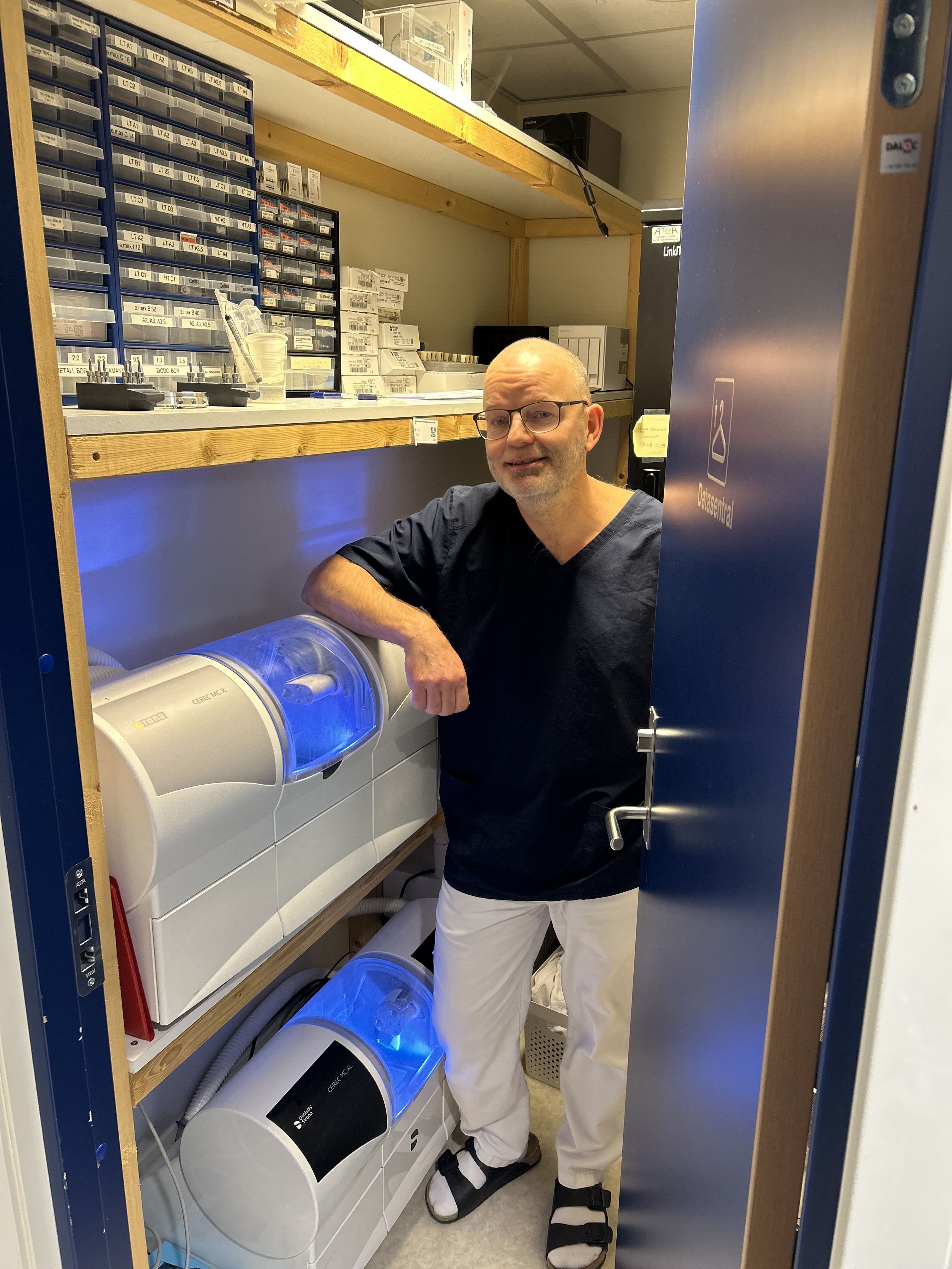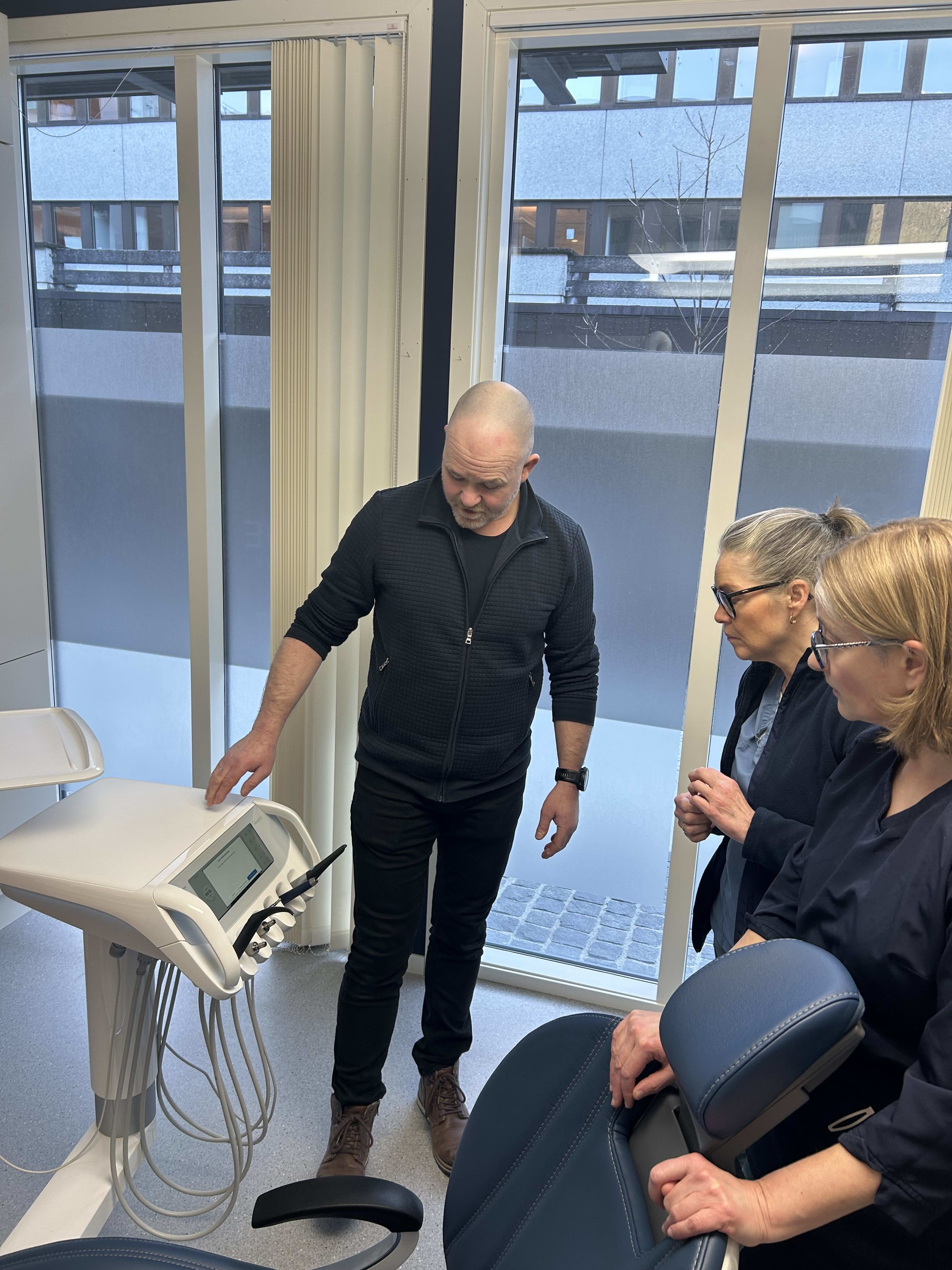 Det er ikke tilfeldig at monteringen hos Emalje Tannklinikk gikk på skinner. Bak de nye Axano behandlingsstolene står en av Jacobsen Dentals mest erfarne ansikter, servicetekniker Torben. Med sin solide kunnskap og kjennskap til Dentsply Sironas utstyr gjennom flere tiår, sørget han for at overgangen fra de eldre behandlingsstolene til den moderne Axano-teknologien ble sømløs. For Torben handler en montering om mer enn bare skruer, ledninger og teknologi; det handler om å klargjøre et verktøy som tannlegen skal stole på i mange år fremover.