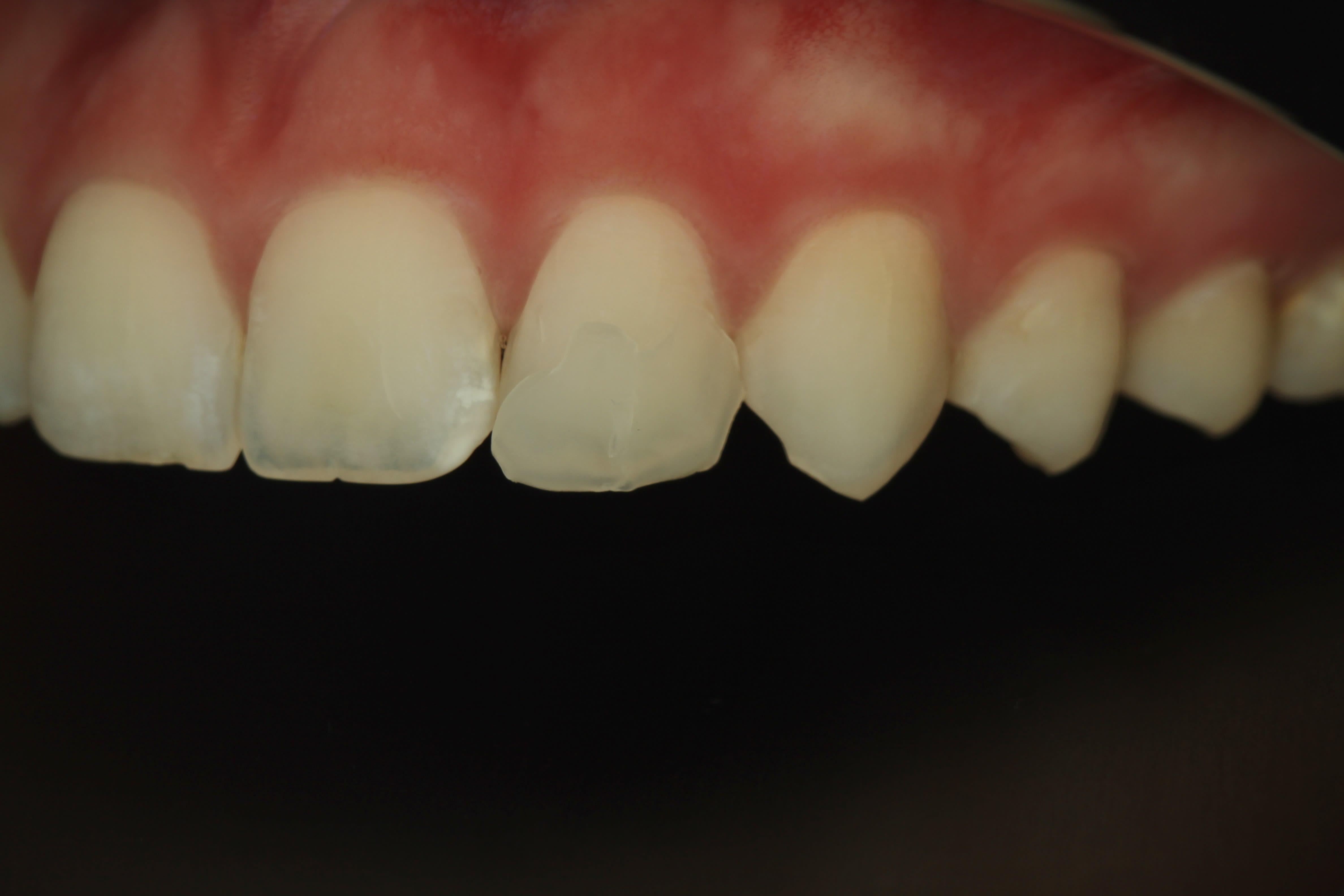 21 år gammel pasient: «Jeg vil gjerne forbedre smilet mitt. De laterale tennene mine ser ødelagte ut, og hjørnetannen er for spiss». Se på restaurerings-prosedyren av Dr. Maria Cura og resultatet.