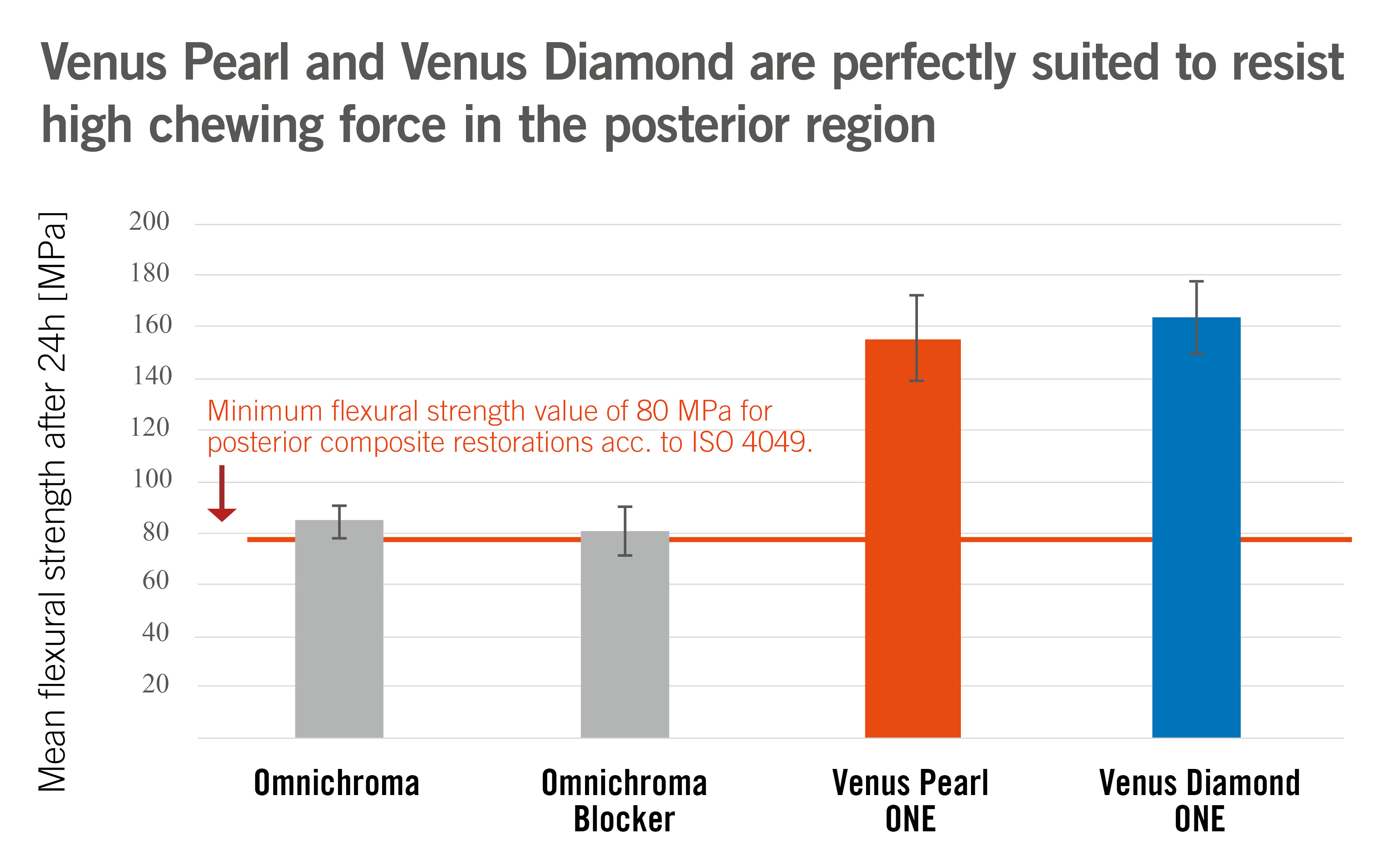 VenusOne sin styrke gjør den egnet til bruk i sterkt belastede molarer, også med cusp-overdekning. Likeså reduseres risikoen for frakturer og chipping, Dette er dokumentert med mer enn 10 års kliniske data.