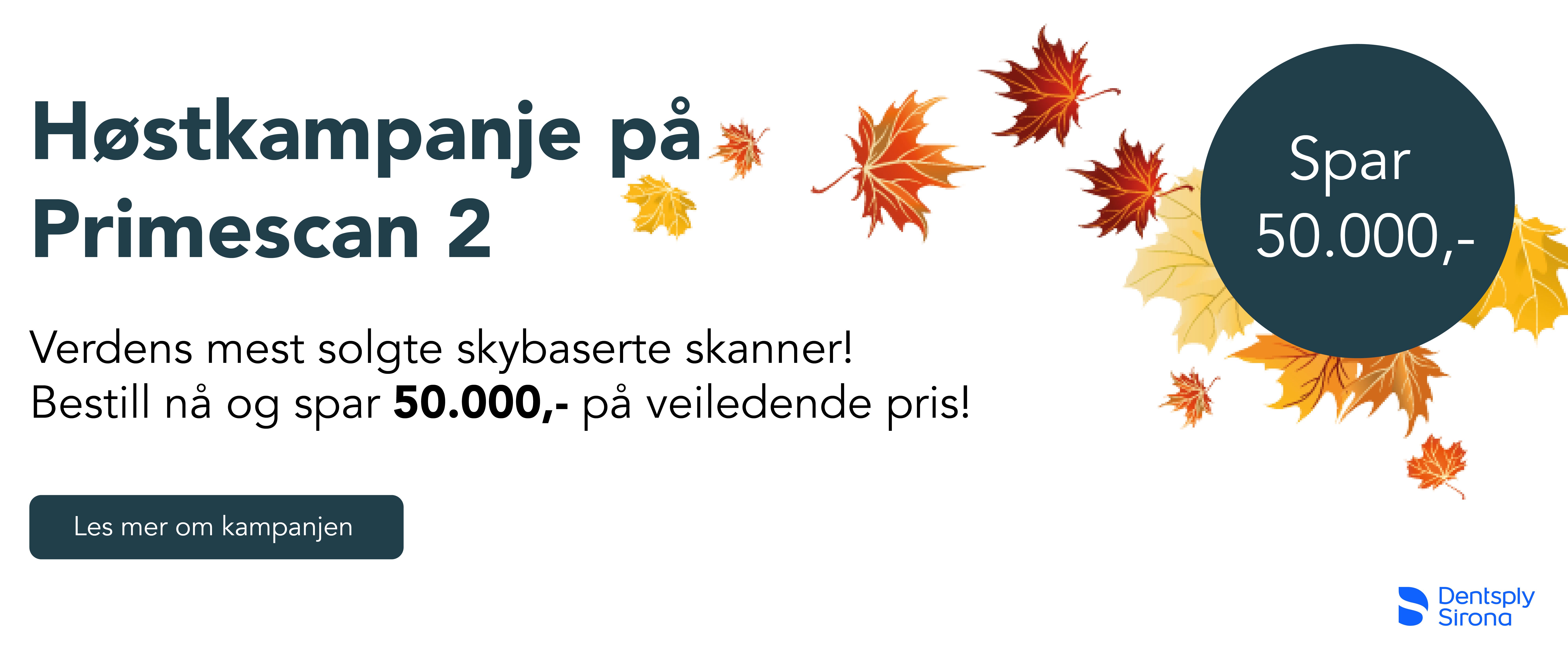 - Primescan 2 leveres med én lader og tre batterier - ekstra ladere kan bestilles separat.